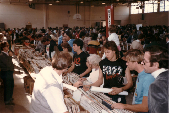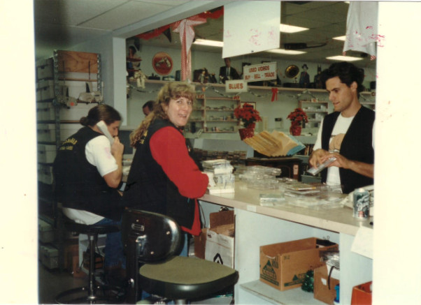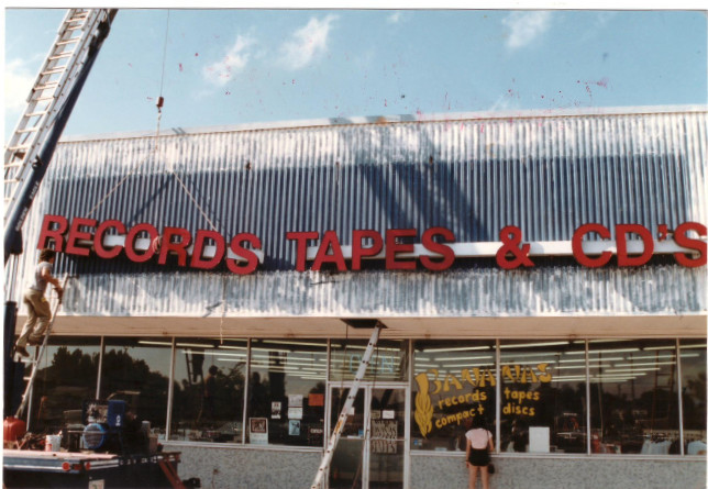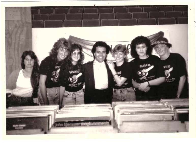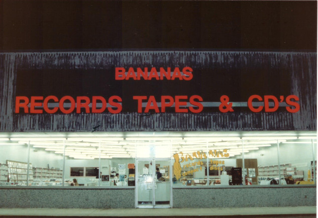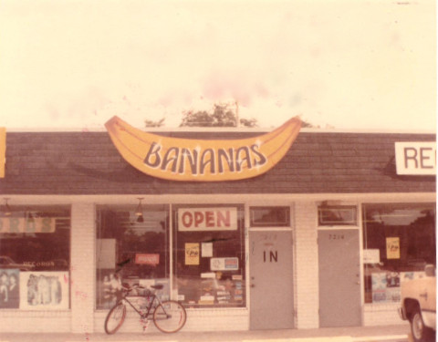Michelle and Doug are avid readers and opened Allen’s Book Store in April 1977. When forced, however, to buy a whole stack of records at a garage sale for a single Joan Baez album, records were added to the inventory. Vinyl soon dominated book sales, and in the early eighties the name became Allen’s Record Exchange. In the mid-eighties the name was changed once more to Bananas Records to match other local, fruit-themed record stores.