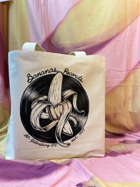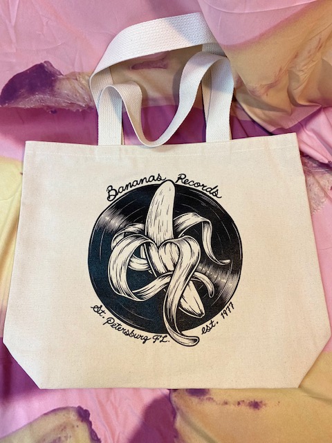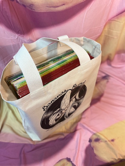 Bring your vinyl home in this massive tote that snugly fits up to 30 records! Awesome quality and machine washable.  Online and in-store